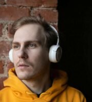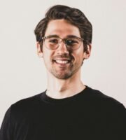 A modern architectural structure with metal beams and a stairway. The design features intersecting lines and angles, highlighted by natural lighting that creates shadows and adds depth.